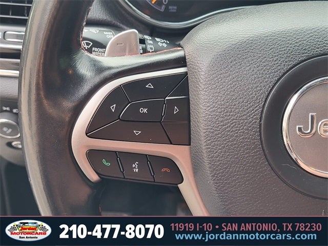 1-Year SiriusXM Guardian Trial, 10 Speakers, 20-Spoke Gloss Black Forged, 4-Wheel Disc Brakes, 4G LTE Wi-Fi Hot Spot, 8.4 Touchscreen Display, ABS brakes, Air Conditioning, AM/FM radio: SiriusXM, Anti-whiplash front head restraints, Apple CarPlay, Apple CarPlay/Android Auto, Audio memory, Auto-dimming door mirrors, Auto-dimming Rear-View mirror, Auto-leveling suspension, Automatic temperature control, Brake assist, Bumpers: body-color, Compass, Delay-off headlights, Disassociated Touchscreen Display, Driver door bin, Driver vanity mirror, Dual front impact airbags, Dual front side impact airbags, Electronic Stability Control, Emergency communication system: SiriusXM Guardian, Four wheel independent suspension, Front anti-roll bar, Front Bucket Seats, Front Center Armrest w/Storage, Front dual zone A/C, Front fog lights, Front reading lights, Fully automatic headlights, Garage door transmitter, Google Android Auto, GPS Antenna Input, GPS Navigation, HD Radio, Heated door mirrors, Heated front seats, Heated rear seats, Heated steering wheel, Illuminated entry, Integrated Center Stack Radio, Integrated Voice Command w/Bluetooth®, Knee airbag, Leather Shift Knob, Low tire pressure warning, Memory seat, Navigation System, Normal Duty Suspension - Increased Travel, Occupant sensing airbag, Outside temperature display, Overhead airbag, Overhead console, Panic alarm, ParkView Rear Back-Up Camera, Passenger door bin, Passenger vanity mirror, Power door mirrors, Power driver seat, Power Liftgate, Power passenger seat, Power steering, Power windows, Quick Order Package 2BJ, Radio data system, Radio: Uconnect 4C Nav w/8.4 Display, Rear anti-roll bar, Rear reading lights, Rear seat center armrest, Rear window defroster, Rear window wiper, Remote keyless entry, Security system, SiriusXM Satellite Radio, SiriusXM Traffic Plus, SiriusXM Travel Link, Sliding Moonroof, Speed control, Speed-sensing steering, Speed-Sensitive Wipers, Split folding rear seat, Steering wheel mounted audio controls, Tachometer, Telescoping steering wheel, Tilt steering wheel, Traction control, Trailhawk Leather/Suede Seats, Trip computer, Turn signal indicator mirrors, USB Host Flip, Variably intermittent wipers, Ventilated front seats, Voltmeter, Wheels: 18 x 8.0 Off Road Aluminum.